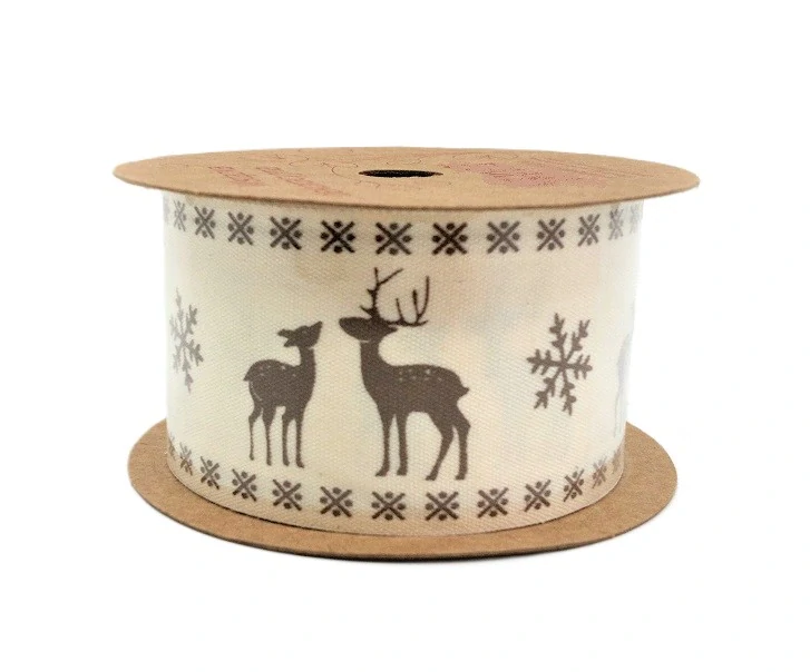 Chcete vytvořit dokonalou dekoraci nebo zabalit vánoční dárek? Použijte k tomu krásnou dekorativní stuhu v krémové barvě s potiskem jelena. Stuha vykouzlí klidnou zimní atmosféru.