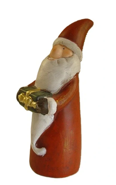 Ježíšek s dlouhým bílým plnovousem, který podává dárek. V dlouhém červeném kabátu: tahle jednoduchý styl pro klasické vánoce se vám bude líbit.