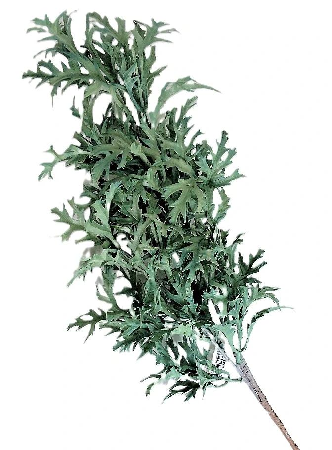 Na stonku je 16 výhonů s větvičkami. Na povrchu listí je poprašek imitující živou květinu.