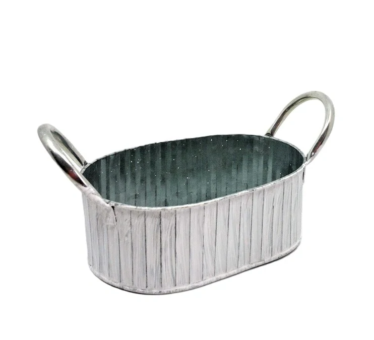 Klasický jednoduchý plechový truhlík s vroubkováním v patina šedo-bílé se vám bude hodit do vintage stylu.