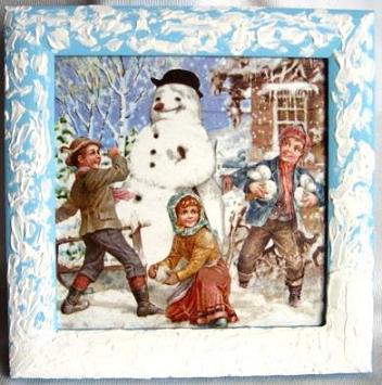 - Obraz 19x19 cm, děti a sněhulák
