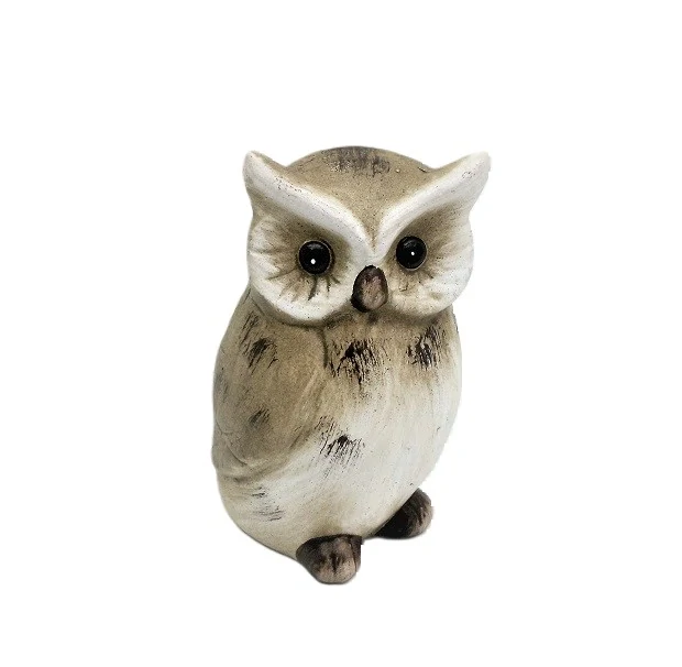 Figurka sovy je ručně malovaná, s jemnými odstíny peří v hnědé s detailem v černé barvě.