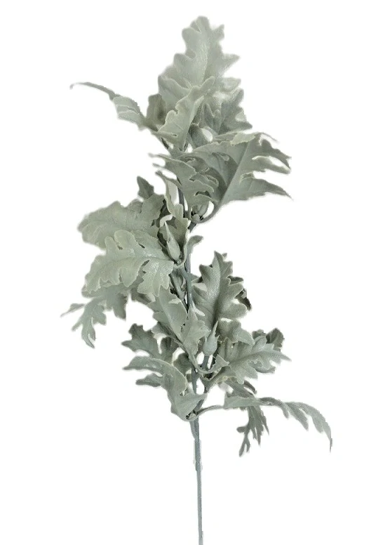 Přízemní růžice patina šedých vykrajovaných listů, vytvářejí zajímavý kontrast v dekoracích. Na větvičce je 7 výhonů s listím.