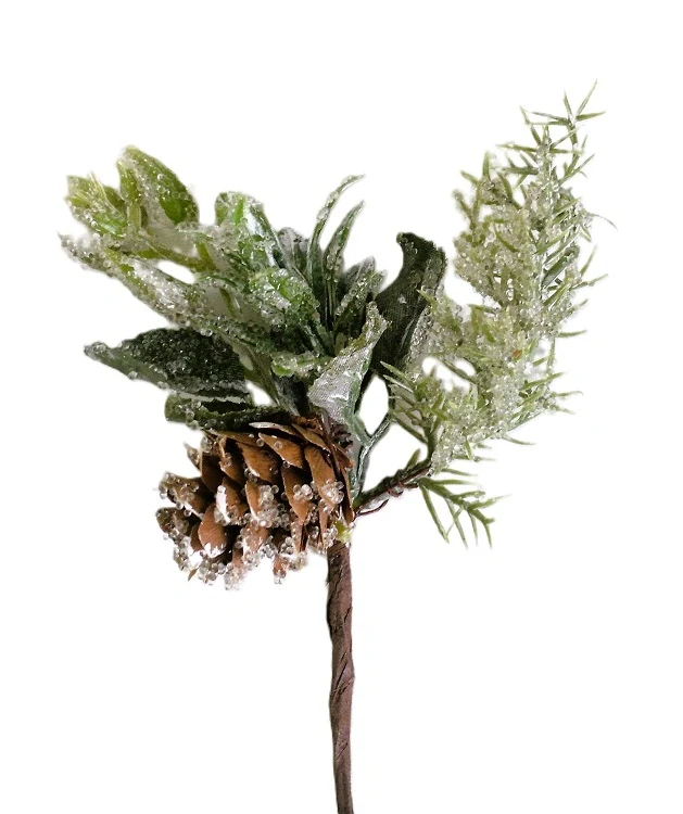 Ve svazku je 5 druhů: 4 ks zeleně (cesmína, cypřiš) a 1 ks borová šiška. Jejich povrch je pokryt jemnými drobnými krystalky. Právě takovými, které v zimě pokryje po ránu mrazivý vzduch!