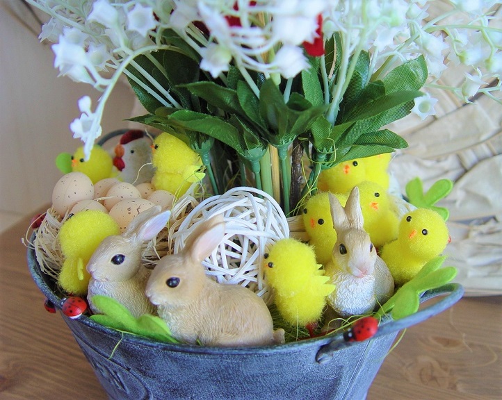 Velikonoční období, klidný čas plný žlutých kuřátek, slepiček a kohoutků. Ta drobná, roztomilá zvířátka probouzejí život kolem nás. Vyberte si proutěný tmavý truhlík, který výborně ladí se žlutým a bílým odstínem - kuřátka, beránci, krokusy, konvalinky. Nezapomeňte na zajíce v odstínu podobném proutěnému truhlíku.