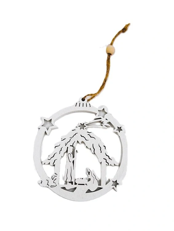 Vyřezávaná ozdoba Betléma s drobnými detaily vás okouzlí. Je na závěsu, takže ji snadno kamkoliv umístíte.
