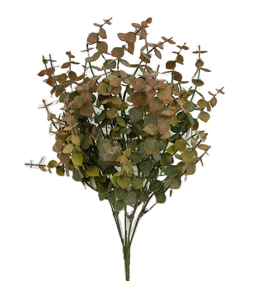 Keřík s listy borůvčí v krásném odstínu od hnědé - latté, po zelenou až v kombinaci latté-šedá-oranžová ve špičkách větviček listí. Větvičky jsou vyrobeny z lehkého PVC. Na listech je poprašek napodobující živou rostlinu, a proto vypadá jako přírodní.