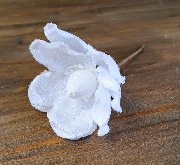 Květ čemeřice upevníte lehce, neboť květ je na zápichu. Okraje květu se stříbrnými třpytkami.