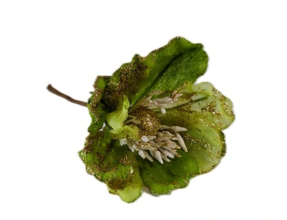 Květ čemeřice upevníte lehce, neboť květ je na zápichu. Okraje květu se zlatými třpytkami.