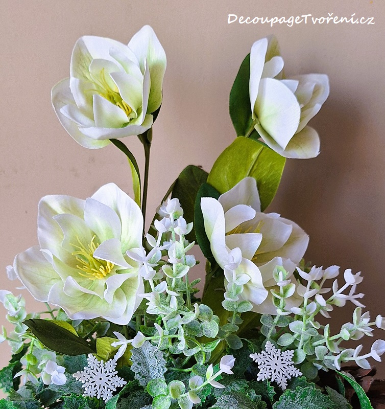 Bohaté květy čemeřice kvetou od prosince do února. Živé si nechte na záhonu, do truhlíku si pořiďte umělé. Jejich krása je stejná jako těch živých. Photo By Lucie B., DecoupageTvoření.cz