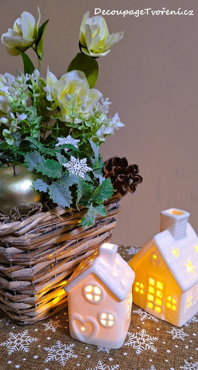 Když si večer chcete užít pohodu, přidejte několik LED domečků a rozsviťte si žluté teplé světlo. Hodí se na dlouhé zimní večery. Photo By Lucie B., DecoupageTvoření.cz