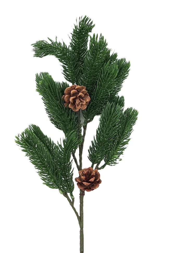 Větvička chvojí má 5 výhonů se 3 větvičkami jehličí, a proto je můžete odstříhat a vložit do truhlíků, košíků nebo jako výplň menších dekoračních nádob. Na větvičce 2 ks sušených přírodních šišek borovice.
