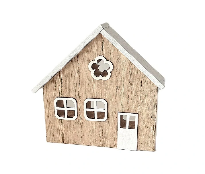 Domek 12,5 cm přírodní/bílá, s květinou