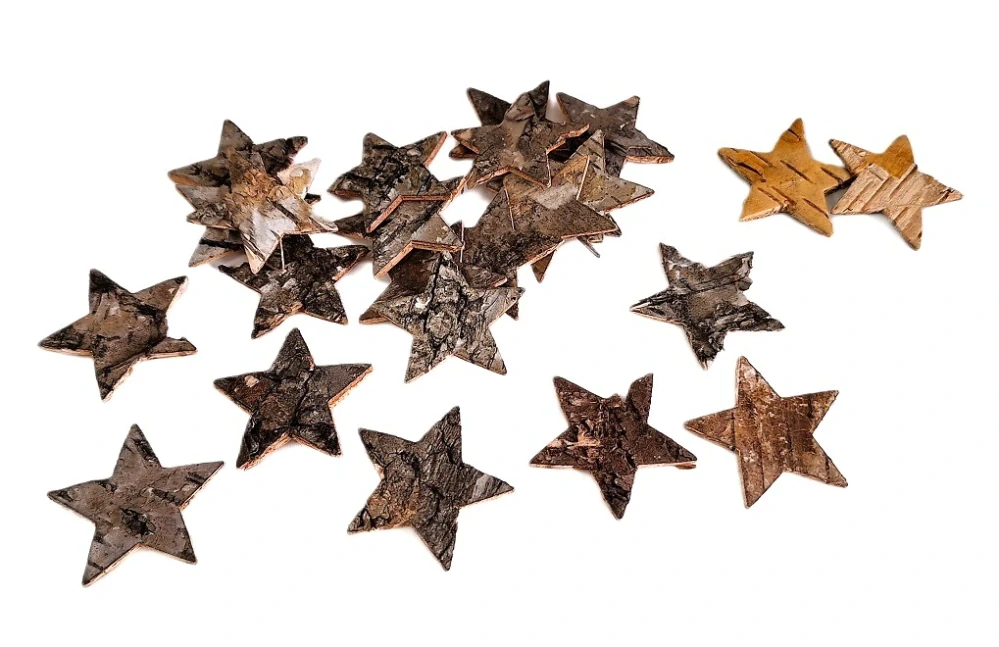Povrch hvězdy je zvrásněný, tak jako je kůra přírodní břízy. Design z jedné strany. Druhá strana v hnědé.