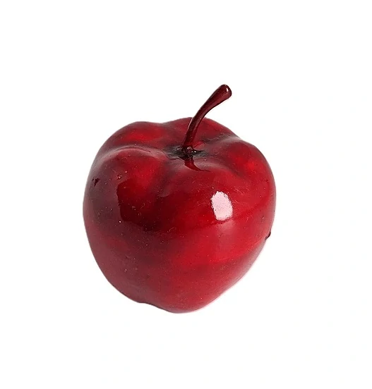 Dekorační přízdoba jablka je na povrchu lesklá, vyrobená z umělé hmoty.