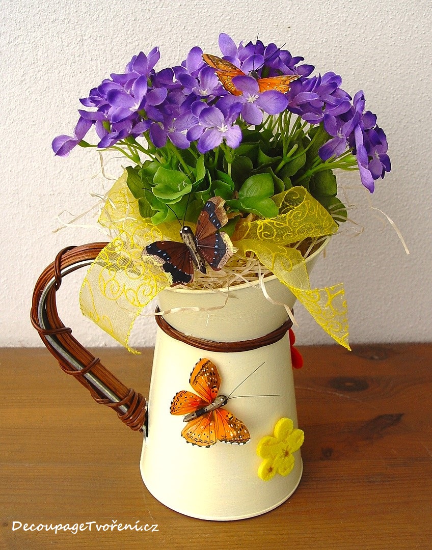 Když nemůžete sehnat kovový džbánek ve správném odstínu (což není tak snadné, neboť většinou jej v nabídce naleznete v patina šedém odstínu), tak si barvu vytvořte sami.