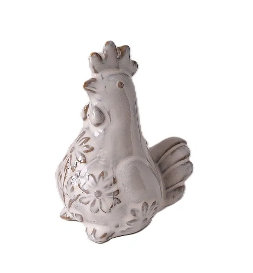 Velikonoční přízdoby z porcelánu. Tahle porcelánová figurka je v bílém odstínu, kde podklad tvoří patina hnědá, kde vyniknou obrysy květin na "břichu", ale také křídla, pařáty, kohoutek, oči, zobák a ocas.