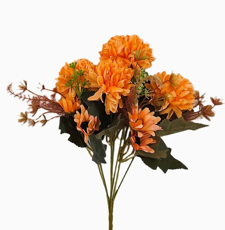 - Kytice chryzantéma/gazánie/travina 30 cm 7 květů, oranžová