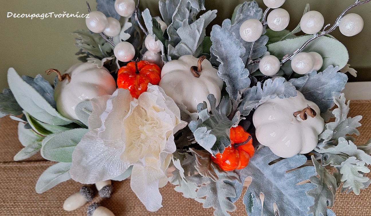 Vytvořit originální podzimní dekoraci je opravdu snadné a rychlé. Co vám zabere čas, je nápad a hledání potřebných přízdob a materiálu. Když zvolíte jemný pastelový odstín v bílé a šedé, bude aranžmá vypadat úchvatně. Tyhle odstíny se totiž hodí nejen do sychravého a nevlídného dne, ale také, když nám přeje babí léto se sluníčkem. Výsledek vás ohromí.