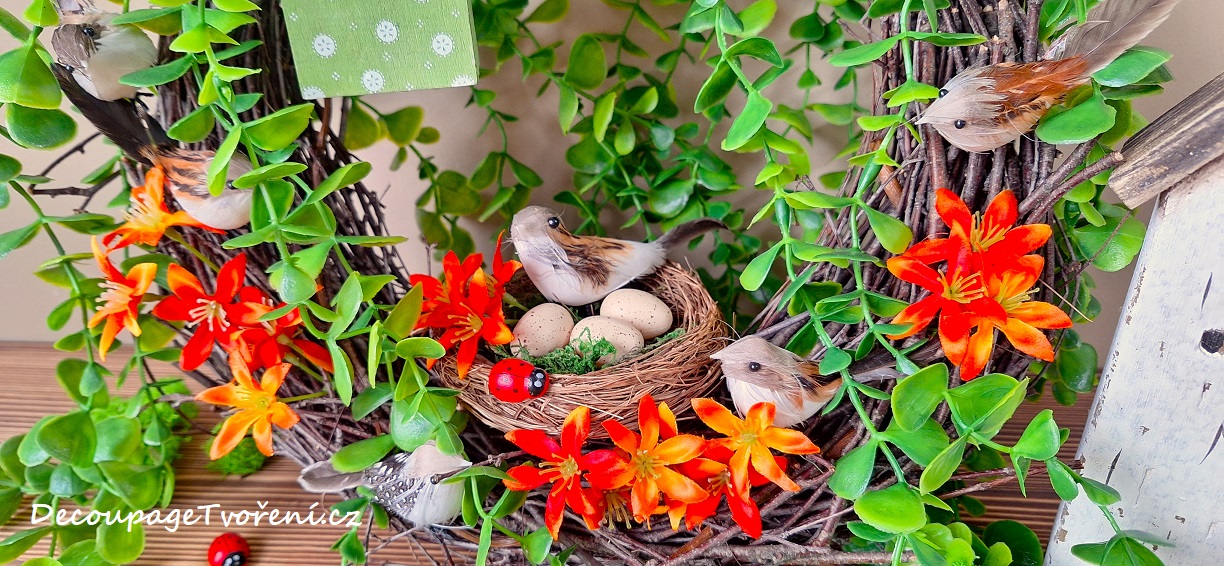 Využití různých materiálů, od přírodních, sušených, řezaných, až po umělé, umožňuje stvořit originální výzdobu v podobě jarních dekorací, které jsou spjaty s Velikonoční výzdobou.