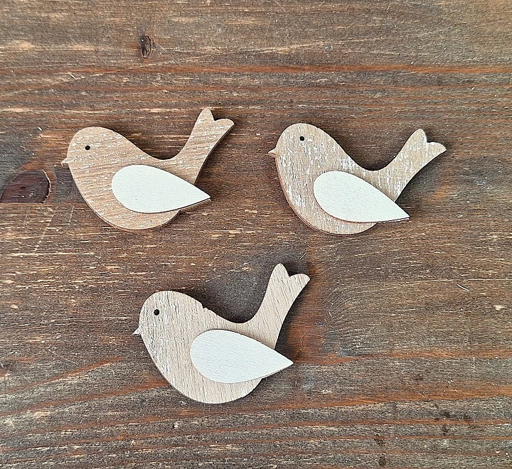 - Ptáček 3,8 cm výsek přírodní/bílá, 3 ks