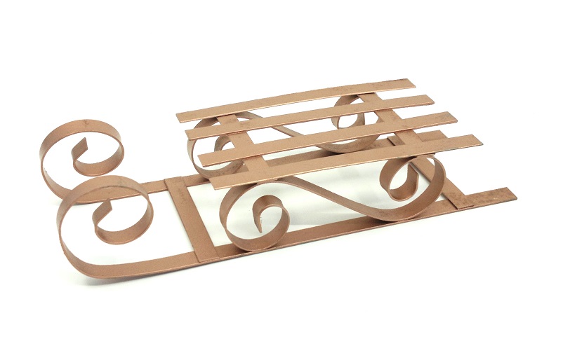 Úžasná luxusní dekorace sáněk v kovovém bronzovém odstínu, která se hodí do náročných designových aranžmá s bílými a šedými odstíny.