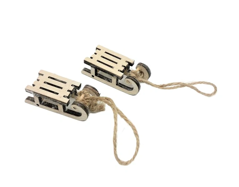 Dřevěné přírodní sáňky s provázkem. Zavěste je.