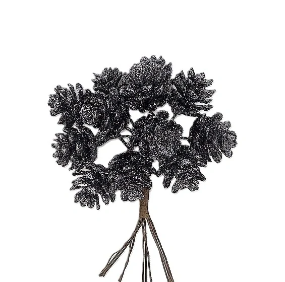 Ve svazku je 12 ks šišek (každá na samostatném drátku). Povrch se stříbrnými třpytkami.