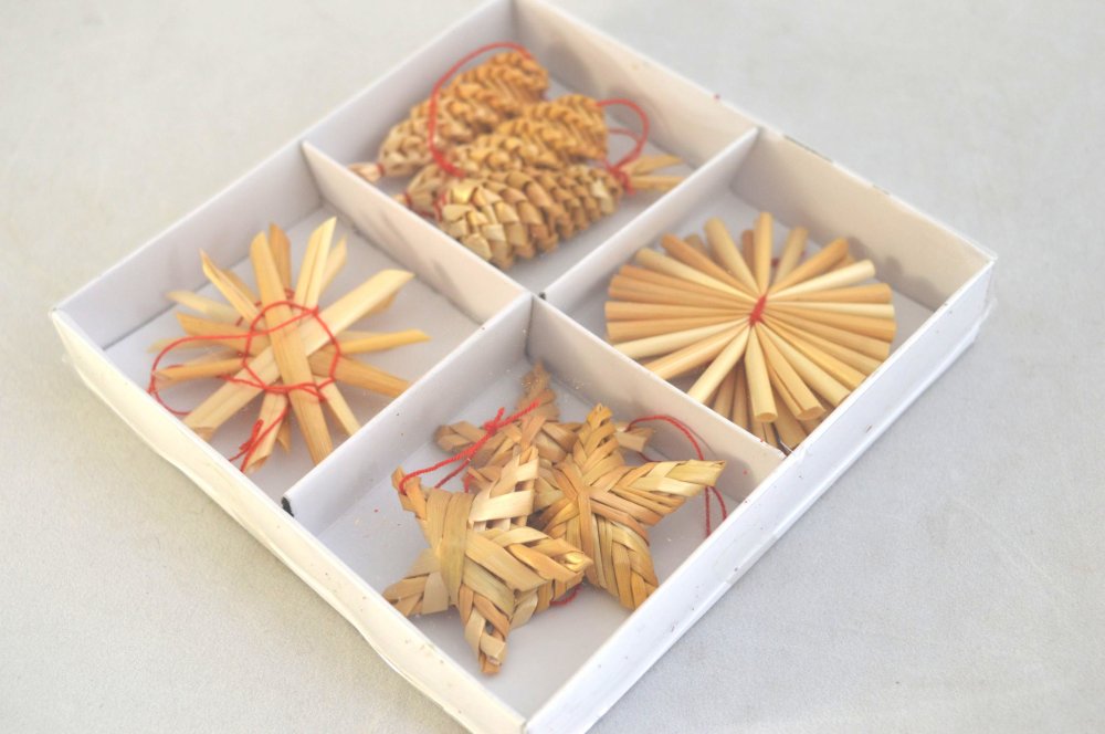 Slaměné ozdoby pro venkovský styl dekorací. Ozdobte si vánoční stromek, použijte na girlandu nebo modřínové větvičky.