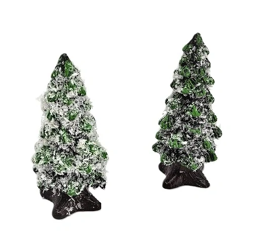 Malé zelené stromečky se zasněženým povrchem - skvělá dekorace pro vytvoření Adventní vesničky!