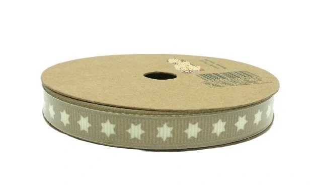 Stuha s potiskem hvězdy. Stuha díky své barvě bude tou poslední třešničkou na dortu při balení dárků - zimních nebo vánočních.