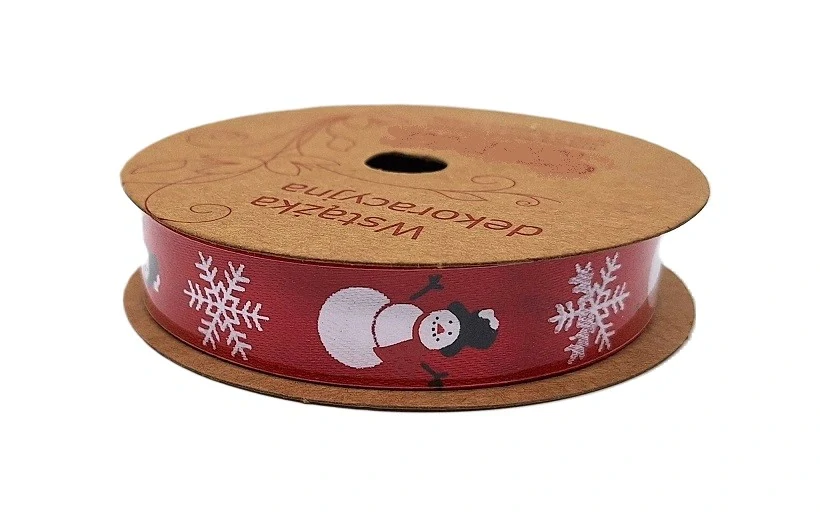 - Stuha 15 mm x 1 m, sněhulák & vločka (červená)