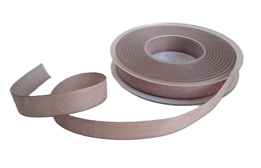 Plátnová stuha - drobný hladký vzor splétaných nitek v matném povrchu. Drží tvar, nekroutí se, v mašlích nepadá.