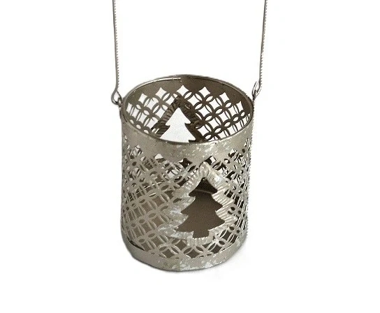 Kovový svícen se svátečním designem stromečku (ze dvou stran). Pro čajovou nebo LED svíčku do Ø 6 cm.
