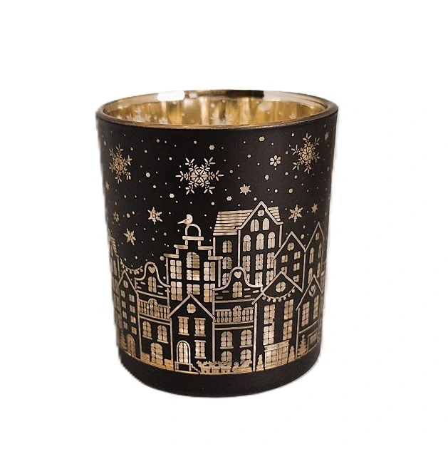 Pořiďte si skleněný svícen se zimním designem domečků a domků. Vytvořte si kouzelné zátiší pro dlouhé mrazivé večery.
