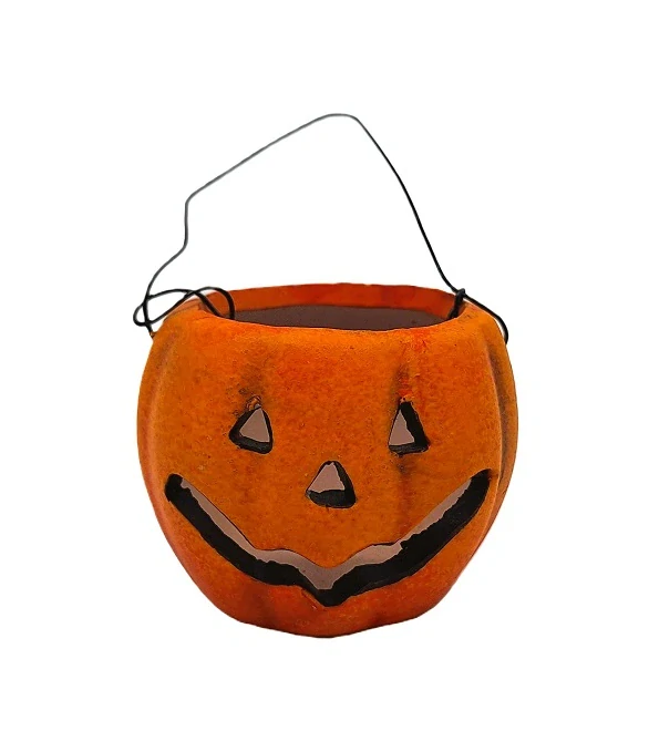 Jednoduchý drobný svícen ve tvaru dýně, na čajovou svíčkunavodí příjemnou atmosféru, když se za okny stáhnou černá mračna. Nechte, ať se na vás strašidlo usmívá!