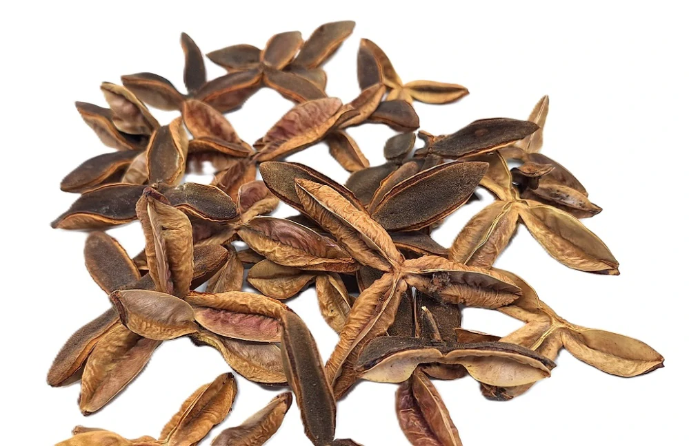 Úžasné plody ve tvaru třícípé vrtulky Terra Estrela se hodí do přírodní dekorace. Povrch je z jedné strany tmavý a z druhé strany světlý, tak jak jej mají plody skořápek, když je vyloupete. Uvnitř se totiž ukrývaly semena. Tyhle plody jsou už zcela otevřené, proto vytvářejí zajímavý tvar malé vrtulky.