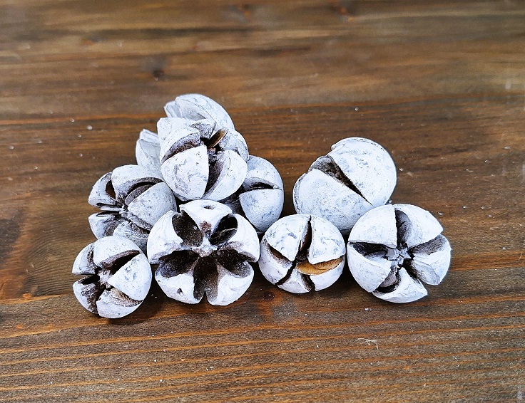 Tillenium, sušené plody s ojíněným povrchem, které se skvěle hodí na zimní dekorace. Průměr 2 - 3,5 cm, výška 1,8 - 3,5 cm (mix velikostí).