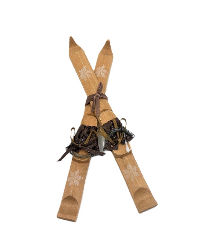 Pamatujete si první lyže pana učitele z filmu Krakonoš a lyžníci? A mohou být menší? Ano, tyhle se vám budou líbit. Imitace starého vázaní vás nadchne. Tyhle dřevěné, ručně vyřezávané lyže s drobnými detaily a malovanou vločkou na povrchu jsou dokonalé.