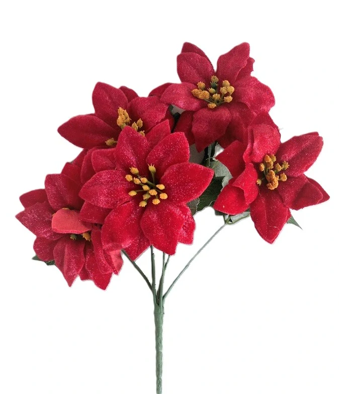 - Vánoční hvězda 30 cm červená, samet (5 květů)