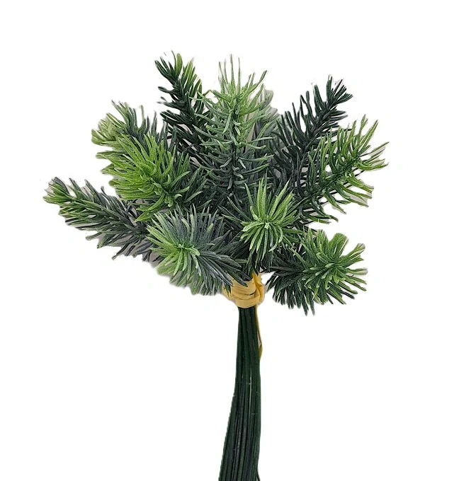Větvičky vyrobena z lehkého PVC a vypadají jako živé. Jehlice jsou v odstínu od tmavě do světle zelené s ojíněným povrchem.