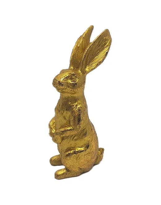 Zajíc z polystonu ve zlaté (lesklý povrch). Tohle je ozdoba pro jarní čas a období Velikonoc.