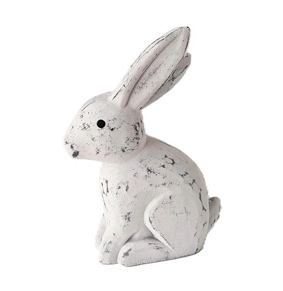 Zajíc vyřezávaný ze dřeva v bílém patina odstínu. Drobné detaily na povrchu. Malované oči v černé.